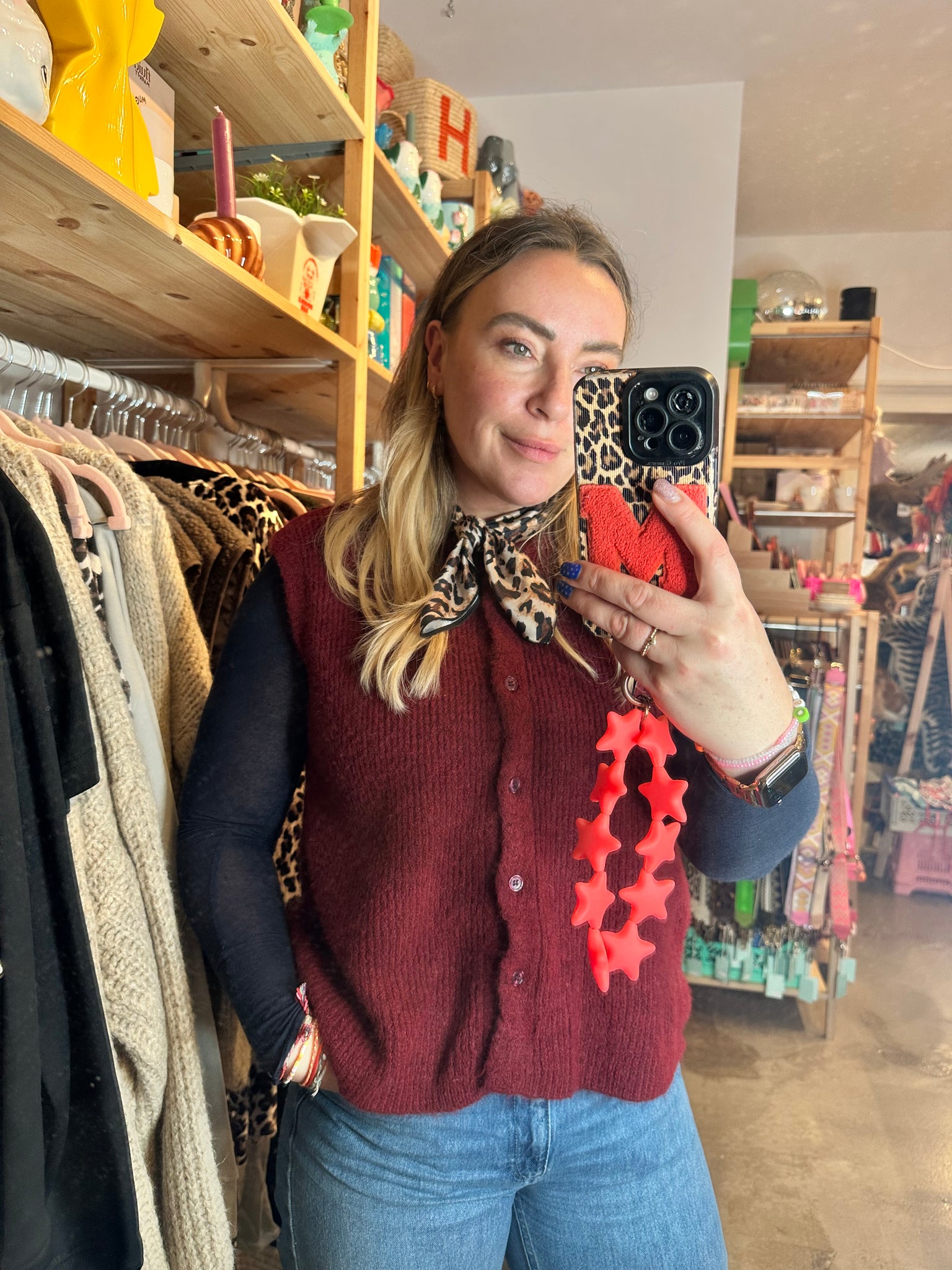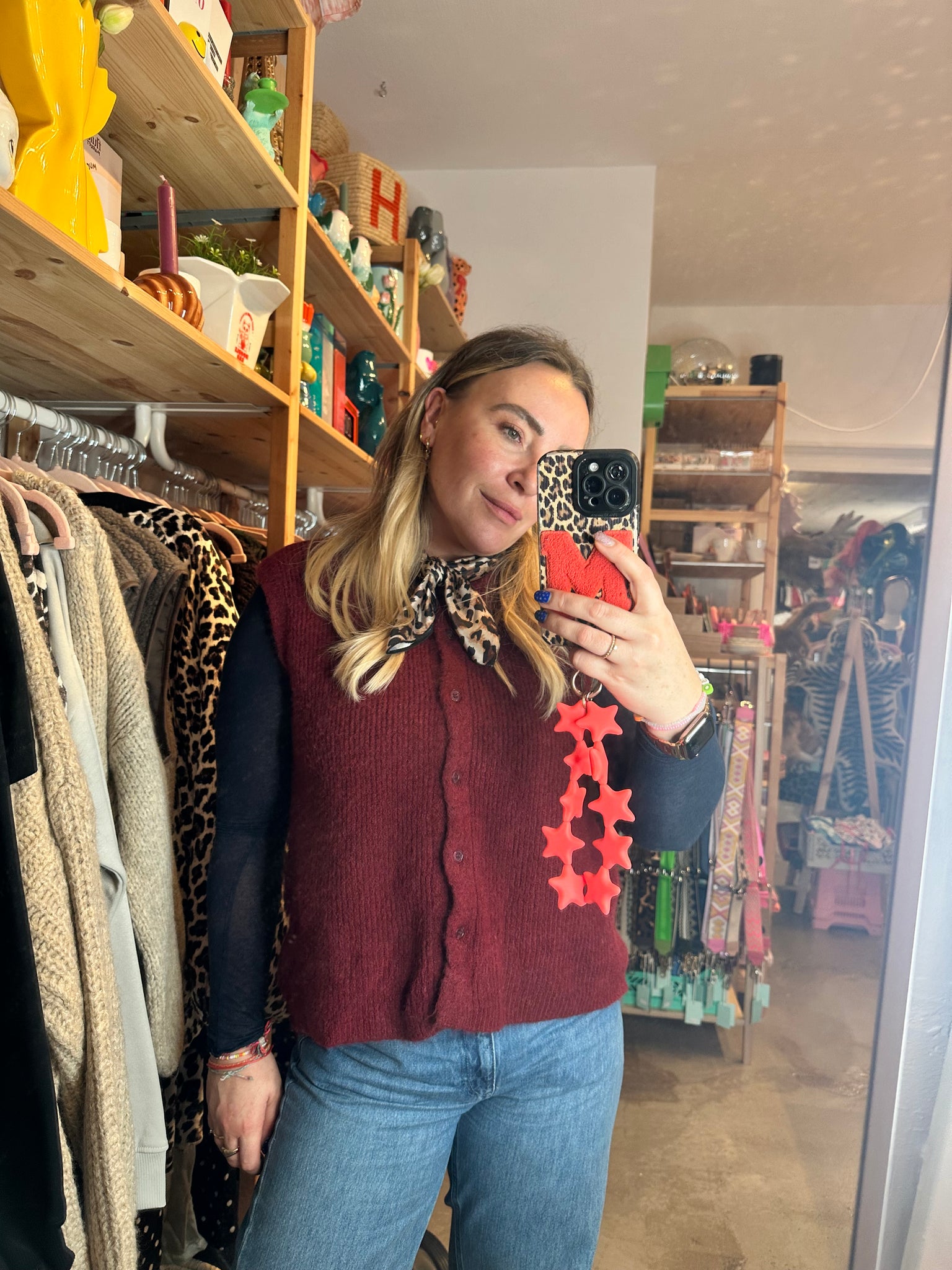 Ob für den Alltag, das Büro oder gemütliche Stunden zu Hause – diese Strickweste lässt sich mühelos kombinieren und verleiht jedem Outfit eine stilvolle Note.